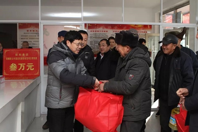 “感謝保利集團和(hé)中輕集團對我們的關懷和捐贈!”在喀喇沁旗(qí)河北街道(dào)辦事處進行的“愛在喀喇沁 扶貧送溫暖”2020年春節捐贈儀式上,當新丘村支部書記王有良、村(cūn)長(zhǎng)郭(guō)瑞東分別(bié)從王(wáng)珂靈、陳曉麗手中接過(guò)黨員活動室建設幫扶款、春節慰問物資的時候,他們發自肺腑地表(biǎo)示感謝,並(bìng)向保利集團贈(zèng)送了寫(xiě)著“深入基層,精準扶貧(pín),情係百姓,溫暖人(rén)心”的錦旗。三萬元的黨員活動室建設經費,可以讓村裏的黨員能(néng)夠擁有一個更好的(de)學習活動場所;捐贈給(gěi)全村70歲以上老(lǎo)人和所(suǒ)有貧困戶的糧、油、棉被等(děng)生活用品,則能夠切實改善(shàn)他們的生活。