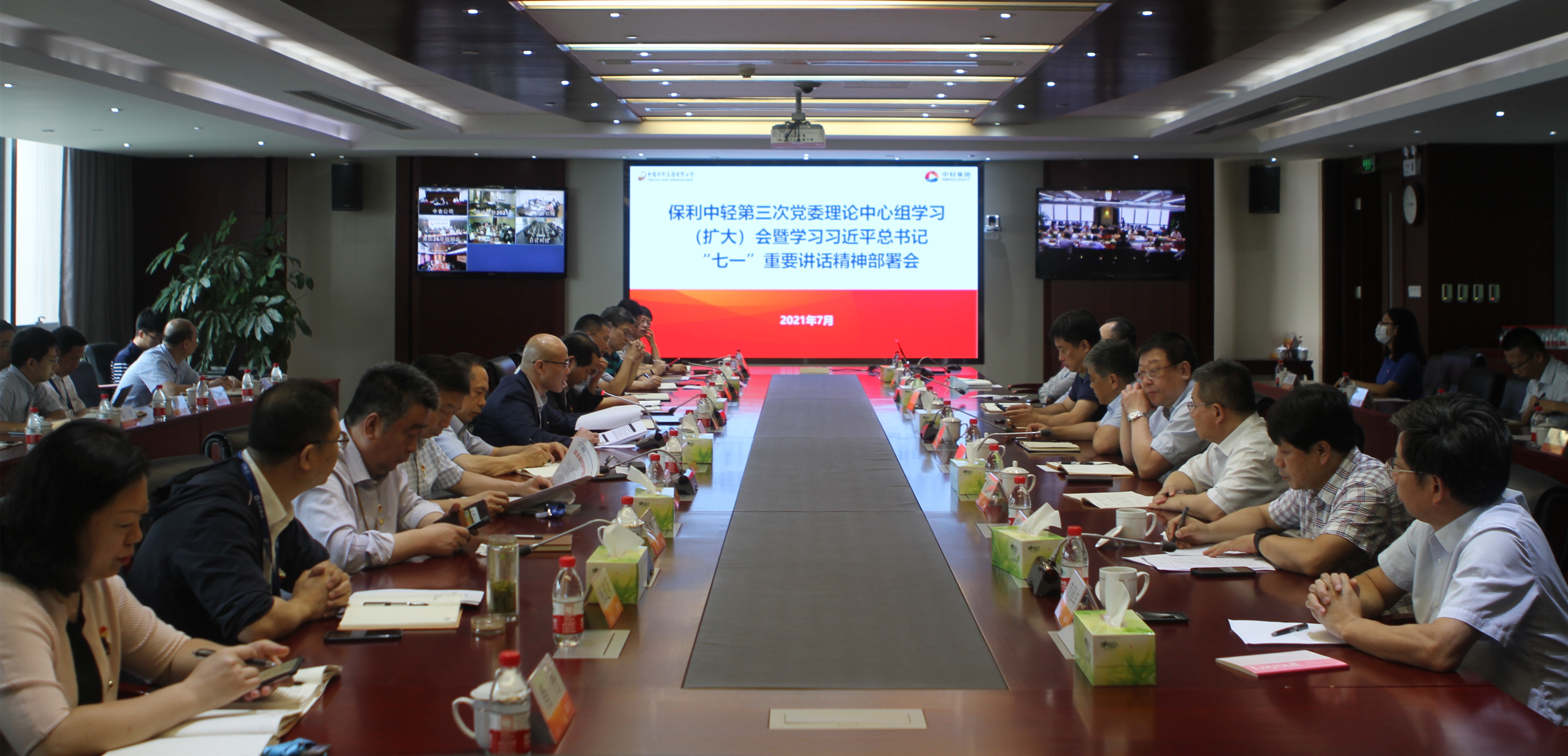 7月(yuè)21日,保利中輕召開2021年度第三次(cì)黨委理論中心組學習(擴大)會暨學習習近平總書記“七一”重要講話精神部署會。會議的主題是:深入學習(xí)貫徹習近平總書(shū)記“七一”重要講(jiǎng)話精神。會上,學習了習近(jìn)平總書記“七一(yī)”重要講話、習(xí)近平總書記在(zài)青海調研時(shí)的重要講話(huà)以及《新征程麵對麵》理論讀本;傳達了《保利中(zhōng)輕深(shēn)入學習貫徹習近平總書(shū)記“七(qī)一”重要講話精神實施方案》,對學習習近(jìn)平總書記重要講話進行安排部署;傳達了保利集團“十四五”發展戰略與規劃細化明確思路。保利中輕黨委書記、董事長張萬順主持會議並作總結(jié)講話,領導班子成員、各子企業黨委書記圍(wéi)繞學習貫徹習近(jìn)平總書記(jì)“七一”重要講話精神交流學習體會。